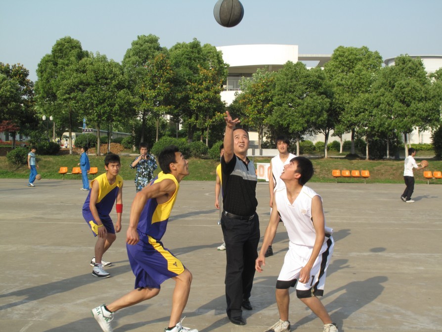 下午4点半首先进行的是赛前的中投比赛,比赛尚未开始,观众们将球场围的水泄不通,大声欢呼,情绪高涨。在投篮比赛最后,我们的刘书记和张学财、夏昌青辅导员也进行了投篮pk,最终刘书记以进十二球的好成绩成为全场第一。