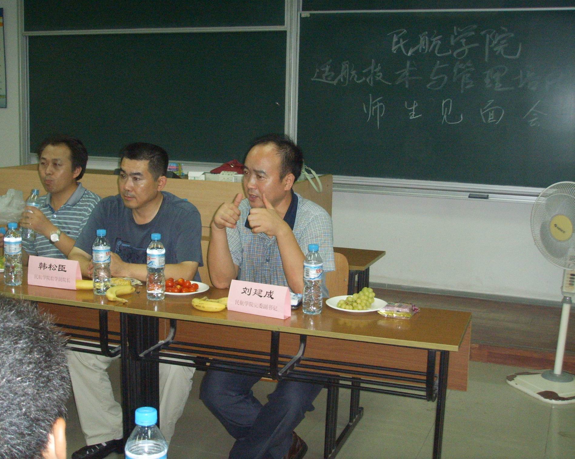 2010年9月22日晚7:00,种子搜索 10级适航管理与技术培优班以座谈会的形式举行了一次别开生面的师生见面会。活动由学院党委副书记刘建成老师主持,参与见面会的还有学院常务副院长王帮峰教授,学院教学副院长韩松臣教授,适航专业首席导师孙有朝教授,教学管理办公室主任王华伟老师,民航工程系党支部书记宫淑丽老师,适航班班主任吴红兰老师以及适航班辅导员夏昌青老师。