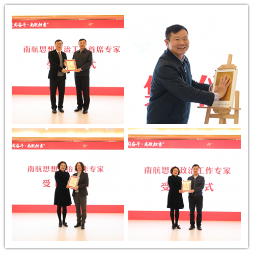 李健和姜斌共同为“民航课程思政研究中心”揭牌。仪式上,姜斌为李健颁发南航思想政治工作首席专家聘书,并进行了首席专家手印采集仪式。王晖为章亚军和陈曦光颁发南航思想政治工作专家聘书。