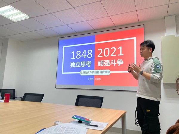 第一党小组在种子搜索 911会议室对抗震救灾精神中包含的自力更生、艰苦奋斗精神进行交流学习。谭枫娟同志对抗震救灾精神的历史背景和精神内涵进行讲述,组内同志对抗震救灾和灾后重建过程中涌现出的英雄人物和先进事迹进行分享,并谈及了学生党员弘扬和传承抗震救灾精神的途径。