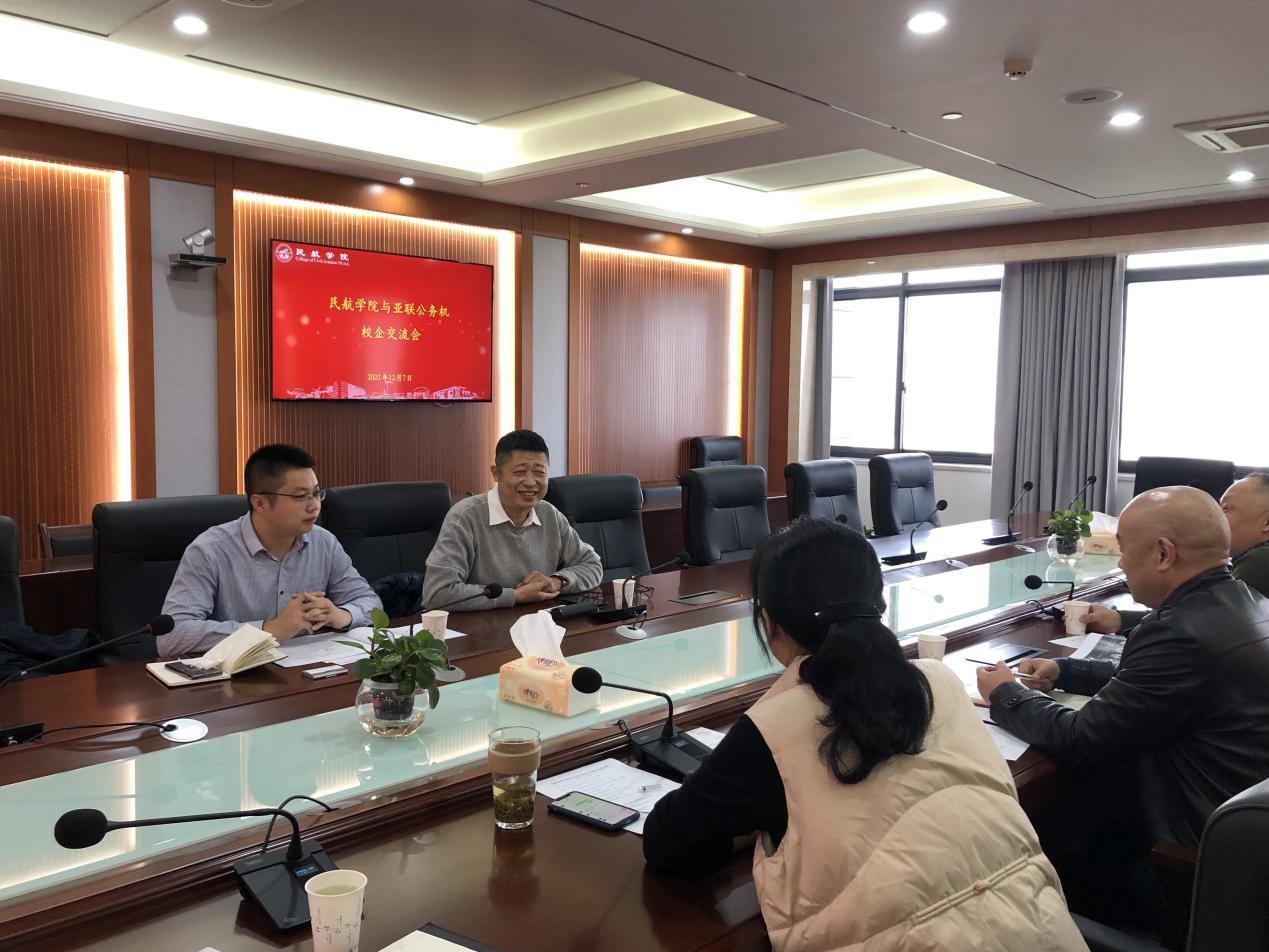陈国栋、王艳分别介绍了公司和学院的情况,李艳军老师从专业的角度谈了公务机行业的特点和校企双方在项目研究、实习实践等方面能够开展的合作。