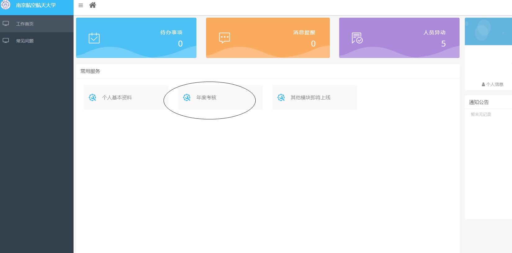 2. 教职工需登陆学校的新版人事管理信息系统//ehr.zzsearch.com,登录名为职工编号,密码为学校统一身份认证密码),在“年度考核”模块(12月15日起开放),填写个人年度考核表,并在线提交,并用A4纸正反面打印、签名后交至各系办主任处,由系主任签署单位考核评价意见后,统一交至学院。