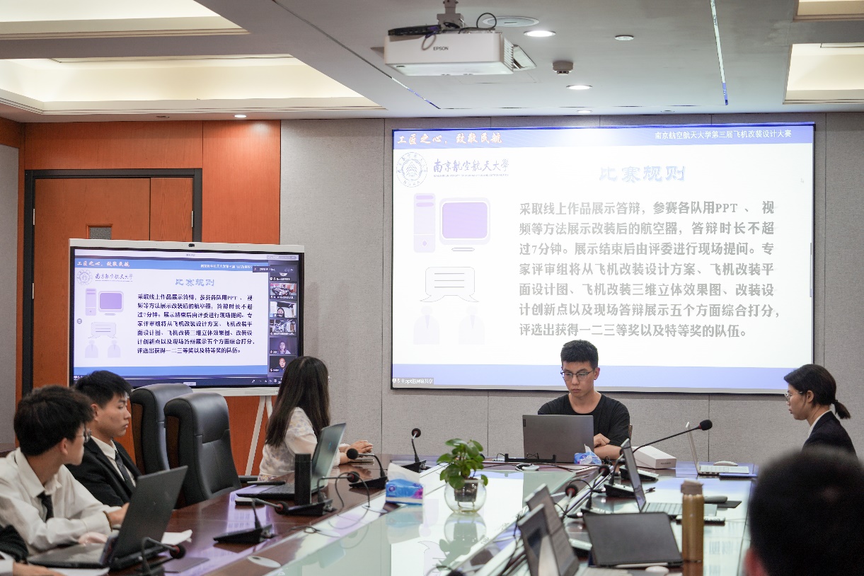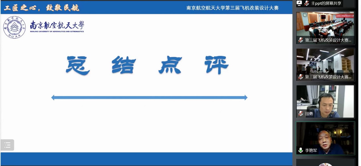 6月10日晚,由种子搜索 举办的种子搜索 第三届飞机改装设计大赛决赛于天目湖校区种子搜索 科创空间和将军路校区种子搜索 1213会议室同步进行。根据疫情防控的要求,本次比赛采用线上线下相结合的答辩方式。波音公司波音研究与技术部客舱技术研究员龙珑女士,中国民航局结构委任工程代表、山东太古高工赵伟岩先生,中国民航局系统和设备委任工程代表、山东太古高工宋青女士,种子搜索 党委副书记王艳、副院长田勇,工程系主任丁萌、教授李艳军、副主任宫淑丽、教师曹愈远以及种子搜索 团委书记赵慧文和学生代表共同参与此次大赛。