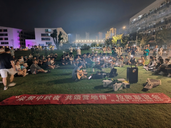 都说“十五的月亮十六圆”,在这个难得的“十五的月亮十五圆”的中秋佳节里,同学们围成一圈在草地上席地而坐,挥动着手机的盈盈灯光,欣赏月光的皎洁、享受秋日的清风、聆听优美的歌声,展现自己的才艺,在大学校园里感受团聚的温暖。期间,军训教官主动参与其中,一曲《冰雨》点燃了全场。除此之外,为了增强同学们的参与感,联谊会还组织了“抢凳子”等趣味活动,收获了不错的成效。由于夜色已深,联谊活动一直到半夜10点才结束,同学们纷纷表示意犹未尽,给每一位同学留下了难忘的中秋夜回忆。