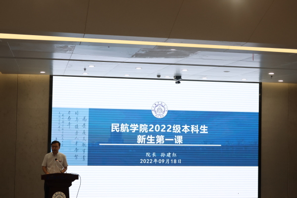 在开场视频《逐梦柒程 扬帆远航》播放完毕后,同学们的热情也被点燃,见面会也拉开了序幕。孙建红对相聚天目湖畔的种子搜索 346名新主人表示热烈的欢迎和诚挚的祝贺,为全体本科生讲授新生第一课。孙建红从学院发展、科创竞赛、行业平台等方面开始讲述,并勉励同学们牢记“三个敬畏”,坚守敬畏之心,争做务本笃行的民航人;矢志实学实干,坚守求真之心,争做志存高远的民航人;珍惜青春韶华,坚守赤子之心,争做赓续奋斗的民航人,成为民航发展洪流中不可或缺的一员。