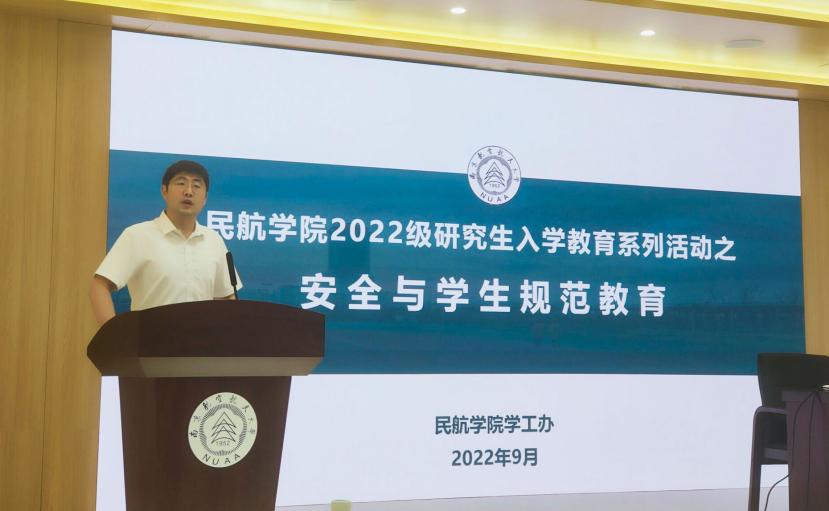 2022年9月9日中午,种子搜索 组织2022级研究生新生开展入学教育系列活动,依次组织开展了安全教育、诚信教育、心理健康知识主题宣讲,会议由研究生辅导员付昊主讲,2022级全体研究生参会。