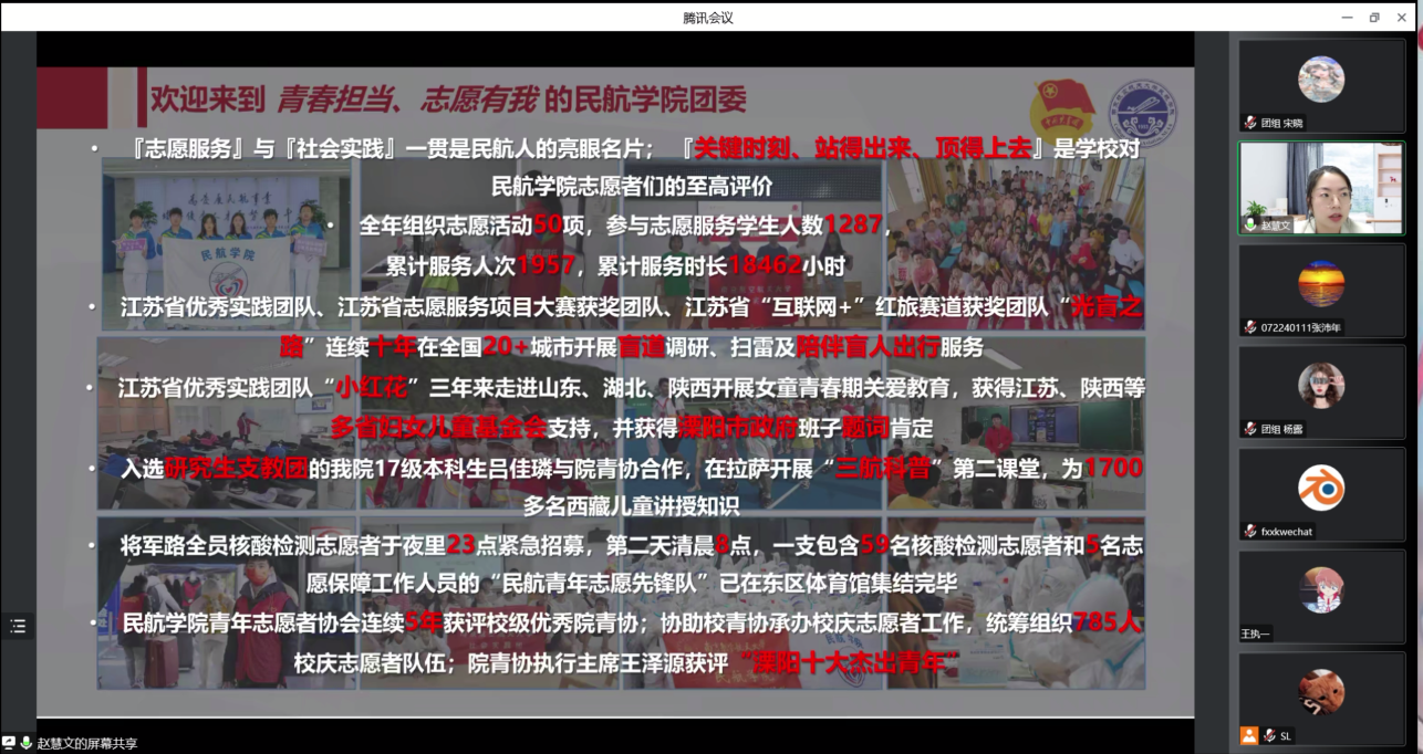 随后,赵慧文特别面向学院天目湖校区新生团干部介绍种子搜索 团委的工作特色与耀眼成绩。她以“敢想敢为、善作善成、有趣有识”高度概括民航团学工作,并以各项实际工作为例,展现了“薪火相传、荣耀接续”“文体强院、创意无限”“立足行业、民航强国”“青春担当、志愿有我”的团学组织形象,让团干们深入了解并思考学院团委工作。最后,赵慧文勉励广大团干部,要把思想和行动统一到党的二十大精神上来,怀抱梦想又脚踏实地,敢想敢为又善作善成,立志做有理想、敢担当、能吃苦、肯奋斗的新时代好青年。