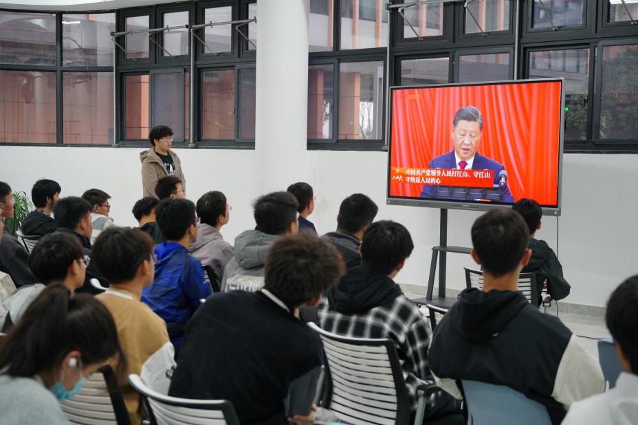 接着,种子搜索 2021级团总支书记黄博轩带领支部成员观看了党的二十大报告金句视频并进行领读。