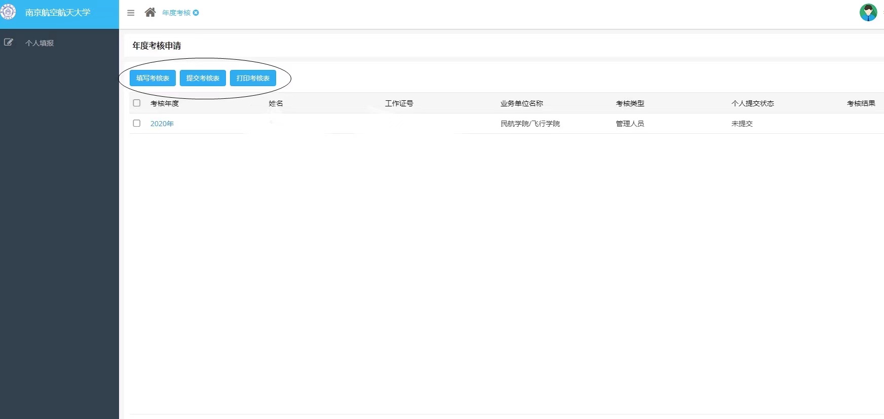 2.教职工需登陆学校的新版人事管理信息系统//ehr.zzsearch.com,登录名为职工编号,密码为学校统一身份认证密码),在“年度考核”模块(2022年12月12日起开放),填写个人年度考核表,并在线提交,并用A4纸正反面打印、签名后交至各系办主任处,由系主任签署单位考核评价意见后,统一交至学院。