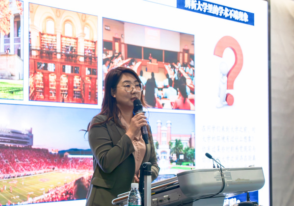 王宇宁从电影《天才枪手》引入,将学术不端行为分为“学术抄袭”“学术剽窃”“学术造假”“侵占他人学术成果”“伪造学术身份和履历”“贪污科研经费”六个方面,结合学校惩处制度,告诉学生学习要端正态度,脚踏实地,切勿让学术不端“污点”玷污人生的“诚信簿”。并针对大学最常见的学术不端现象——考试作弊,结合相关案例,分析作弊动机,帮助学生明晰作弊范畴、了解作弊危害,为在场学生敲响纪律警钟。