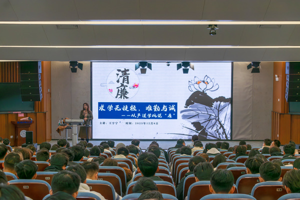 12月8日,种子搜索 举行“求学无捷径,唯勤与诚——从严谨学风说‘廉’”的廉洁治学主题讲座,邀请校内“青廉”讲师团成员、艺术学院党委副书记王宇宁主讲。学院党委副书记王艳、2023级本科生共计300余人参加活动。