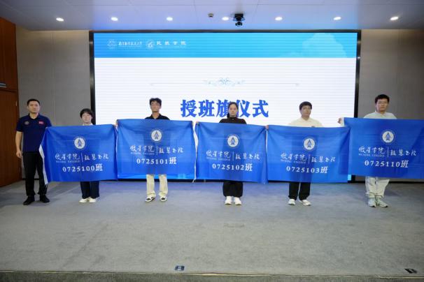 随后,李君、张卓然为新生班主任代表颁发聘书。牧星学院党委副书记、致慧书院执行院长丁琛为新生班级授旗。