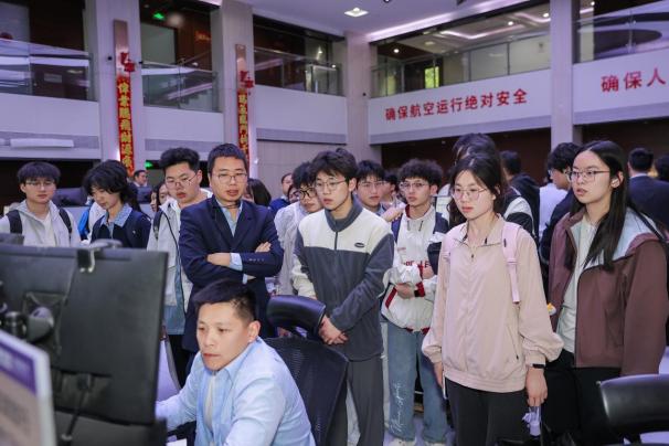 在民航创新实训营环节,学院依托校内特色实验室研学和校外行业单位探秘,全方位展现民航特色风采,为学生深入探索民航提供广阔平台。同学们走进空中交通管理系统全国重点实验室、全景塔台模拟实验室、民航运输可持续发展研究实验室、土木工程综合实验室、航空器人机工效技术实验室、可变低氧环境机场运行指挥及应急处置人员行为特征测量实验系统等专业实验室,近距离观摩前沿设备,直观感受从理论建模到工程验证的完整链条,在“看得见、摸得着”的专业实践场景中进一步坚定了深耕专业的学术志趣。