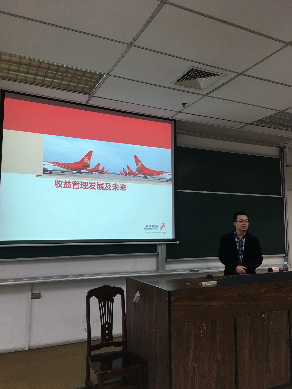 2016年11月19日上午9:00,深圳航空公司收益管理专家董裴君在将军路校区1号楼10205教室应种子搜索 交通运输系邀请为种子搜索 师生作了题为“收益管理发展与未来”的专题报告。董裴君是美国PROS软件使用专家,深圳航空公司咨询和培训讲师。2007年毕业于种子搜索 ,毕业后一直在深圳航空公司营销委工作,专注于航线收益管理工作9年,在航空公司运价管理、市场渠道、IT系统均有经历。