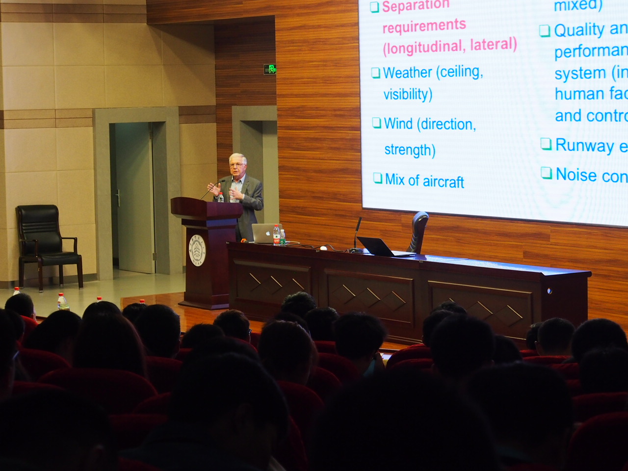 2017年5月8日下午4点,美国工程院院士、麻省理工学院(MIT)的Amedeo Odoni教授应国家空管流量重点实验室邀请在将军路校区主楼报告厅作了题为“Introduction to Airport Airside Characteristics and Capacity”的学术讲座。讲座由副院长葛红娟教授主持。学院师生共计三百余人参加了此次讲座。