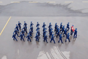 清晨6点30分,学院师生代表有序入场。全体飞行学生在各年级辅导员的带领下,以班级为方队,迈着整齐的步伐精神抖擞地进入了国旗广场。6点45分,千余名飞行学生列队完毕,以昂扬的精神风貌迎接即将到来的升旗仪式。