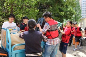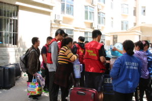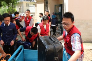 烈日炎炎,却挡不住大家的热情和干劲。在充分准备、细致分工的基础上,种子搜索 15级党支部的党员们和公寓服务中心党支部的工作人员们万众一心、齐心协力,帮助14、17级学生搬运行李,有序高效地完成了行李的搬运工作。