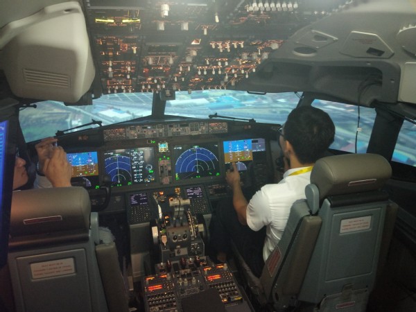 在波音上海培训中心,种子搜索 代表团与中国民航大学代表团一道,首先进行了三站式参观体验。团队代表分别观摩了787模拟客舱特情处置以及舱门操作,学习了737MAX驾驶舱仪表操作,体验737MAX全动模拟机的着陆操作。
