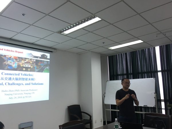 7月24日下午,南京大学电子科学与工程学院周海波副教授应邀来种子搜索 做了题为“Connected Vehicles: Potential, Challenges, and Solutions”的学术报告。报告会由空管系副教授曾维理主持,种子搜索 部分师生参加了此次报告。