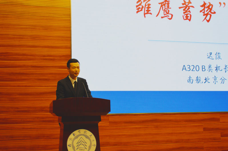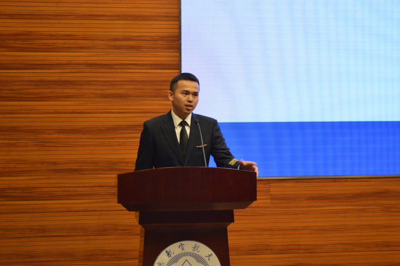 “雏鹰蓄势”机长论坛的第一讲,南航北京分公司的A320 B类机长教员迟俊学长为我们分享了自己从青涩的飞行学员蜕变为成熟机长的心路历程,并强调了英语,身体,与人沟通的重要性。作为南航民航人,代表着中国飞行员,要时刻关注形象和肩上的责任。