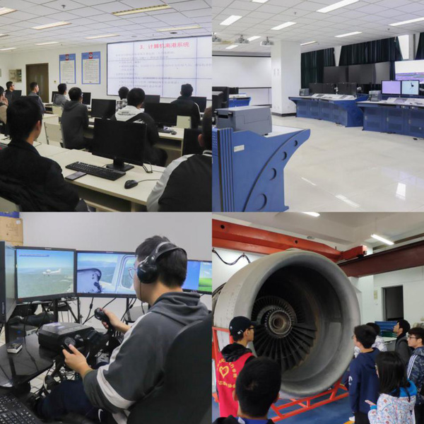 民航运输综合训练实验室,让学生从专业角度了解机场的各类系统构架,熟悉了航空公司和机场运行各部门系统之间的分工合作,提高了大家对专业知识和工作内容的认知。机场管制模拟实验室,通过仪器模拟出各类天气及时间段等复杂机场环境,并演示了切换全国各地任意机场的塔台视角,并通过模拟训练提高学生对工作性质的认识。飞行模拟技术实验室,通过模拟飞行,身临其境地体验起飞降落,甚至横滚、失速等极具专业性的飞行动作,让学生深深体会到了,飞行员的意义不仅仅是驾驶飞行器,更多的是肩上的一份责任。发动机拆装实验室,通过专业讲解,大家对发动机构造有了进一步的认识,在对设计师能工善思的惊叹之余,增添了一份对民航事业的敬畏。