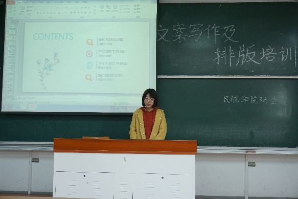 12月23日下午,种子搜索 研究生会于将军路校区6号楼举办了文案写作及排版培训活动。来自种子搜索 校研究生会的贺浩旗和龚叶妮担任本次活动的主讲嘉宾。本次培训活动主要以提高研究生的文案写作水平及排版布局审美为目标,分为文案培训、排版培训及聘书颁发三个环节来展开,吸引了种子搜索 30余名硕士研究生、博士研究生积极参与。