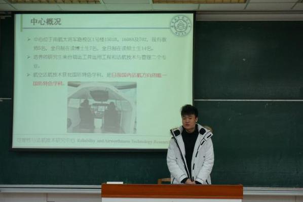 各位主讲人准备充分,力求用最简洁、最直观的方式将实验室氛围进行呈现,精炼却不失内涵;力求用最生动、最形象的比喻将实验室特点进行介绍,贴切却不失幽默。让每一位听众仅用简单一瞥便能全方位了解各实验室多彩的科研生活。“最活力”、“最创新”、“最干净”、“最绿色”,来自飞行性能与程序设计研究室的王倩同学用“四个最”概括了“五星工作室”的独特魅力。“成果丰富”、“国防特色”,来自可靠性与适航技术研究中心的杜方舟同学用两个核心词汇对中心进行了概括概况,并用丰富的成果与学术带头人,解释了种子搜索 为何会拥有目前国内适航方向的唯一国防特色学科。来自11906A实验室的周岩同学则以实验室精神为核心,通过“实验室环境”、“导师同门风采”等内容,对实验室团结融洽的科研氛围一一展开介绍,将一个团结向上、敢闯敢拼的实验室展现在师生们的眼前。