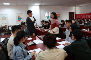 活动的第二环节为“模拟面试”。活动现场有八名同学积极参与此次模拟面试,面试以无领导小组讨论的形式展开,根据企业HR给出的模拟面试题,在5分钟内自由讨论,被面试者轮流发表看法并分工计时,最终统一意见,推选一人进行结论陈述。在模拟面试环节中,八位同学纷纷表达自己对面试题的看法,展开了热烈讨论,相互聆听与合作,在妙语连珠的过程中思想的火花迸发,同时也引发了在场旁听同学的思考与讨论。