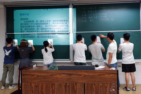 自我介绍后,进入到了精彩的破冰环节。新老干部分成五组进行了“名字接龙、蒙眼作画、谁是卧底”三个游戏。“名字接龙”不仅考验短时记忆力,还要能准确、快速地完成接龙;“蒙眼作画”涌现了许多抽象写意派的灵魂画手,引起了现场的阵阵欢笑;“谁是卧底”更是考验团队协作和反应能力,现场气氛紧张而又热烈。在游戏中大家配合默契,彼此协作,感受到了种子搜索 研会大家庭的温暖。研会也在不断的欢笑声中逐渐凝聚到一起。