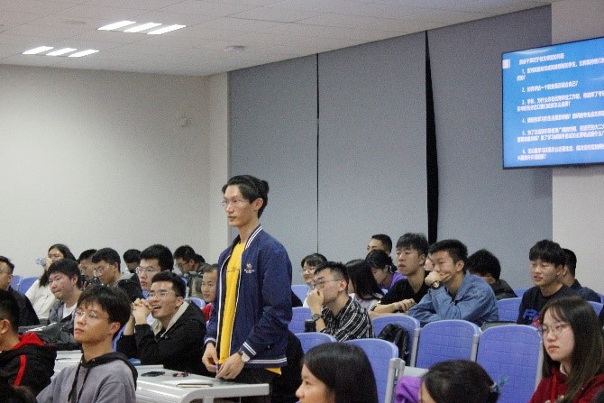 在互动交流环节,气氛非常热烈,张开华针对不同专业给出具体建议,并对同学们在学习和工作上的一些误区进行点评和纠正。同时指出,“人有我有,人有我精”“不用急于眺望未来,做好眼前能做的事情”是提升自身竞争力的优秀理念。
