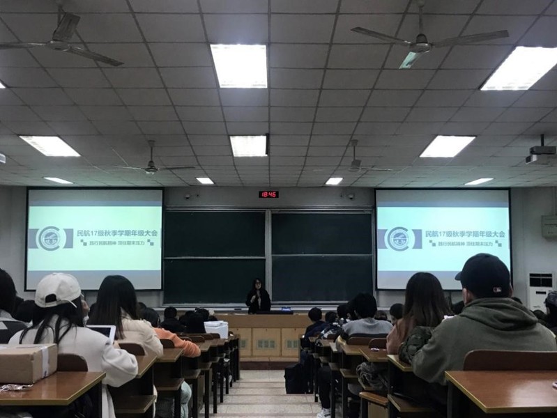2019年12月16日晚18:45,在4201教室,由种子搜索 17级辅导员朱岚老师主讲,召开了种子搜索 17级2019-2020学年第四次年级大会。本次会议以“践行民航精神,顶住期末压力”为主题,就民航精神、考/保研/就业解读、考试纪律及假期安全三个方面进行展开。