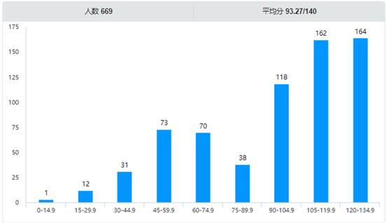 此次比赛共有669名学生参与答题,全部为有效答卷,全卷满分120分(100分必做+20分选做),竞赛平均分为93.7分,其中满分答卷共164分,占比24.5%,100分以上答卷共389份,占比58.1%。