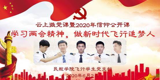 2020年6月2日,民航/飞行学院开展以“学习两会精神,做新时代飞行追梦人”为主题的信仰公开课,以会场外的青年“小视角”,折射出新一代飞行追梦人的“大群像”,公开课由飞行学生党支部副书记黄邹洵主持。