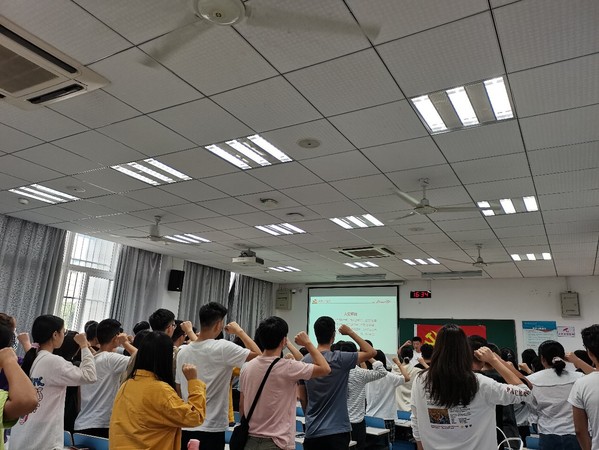最后一个流程为全体党员重温入党誓词。由党支部书记张天赐领誓,党员们目光坚定、语气铿锵地重温了入党誓词,展现了种子搜索 2020级研究生新生党员的良好的精神风貌。