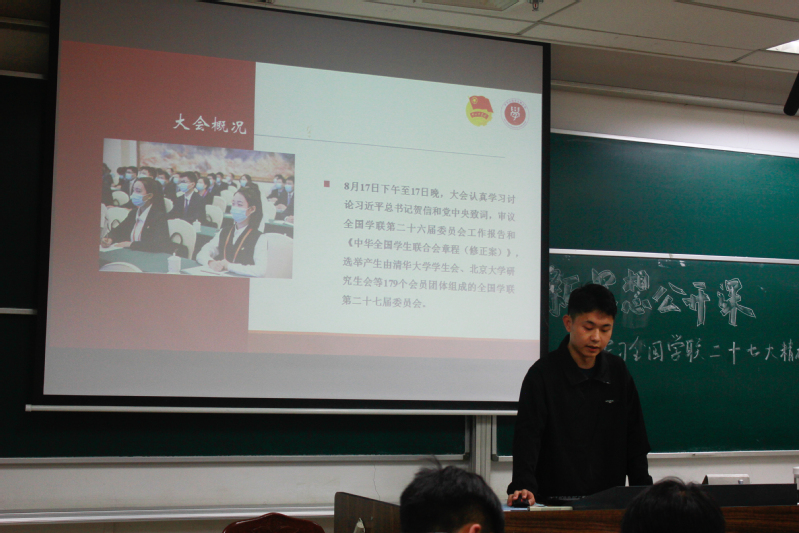10月29日晚,种子搜索 (飞行学院)于将军路校区一号楼10106举办新思想公开课:学习全国学联二十七大精神,公开课由校第23届研究生支教团成员陶旭东、18级飞行团总支书记、校“青马工程”骨干班优秀学员黄邹洵主讲,学院将军路校区所有团干参与了此次活动。