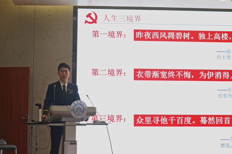 “以史为鉴,可以知兴替。”比赛过程中,选手们通过对“四史”的诠释,讲述了“四史”的重要意义与深刻内涵,由此引出民航青年的责任与担当。同学们聚焦于某个人,某件事乃至某个地方,从微处着眼,提炼出四史精神的深层含义。张新和刘志琪分别讲述了南昌起义和松骨峰狙击战,生动的描述再现了当时曲折激荡的场景,引领着在座各位思考民族精神和爱国精神永垂不朽的力量;杨婉君立足于中国民航发展史,通过三代人的民航岁月展现了民航蓬勃的发展和民航人踏实严谨的工作精神与高尚伟大的情怀;李天扬指出了民航人的“信仰、初心、使命”,鼓励在座的未来民航人要为祖国与民众负责,勇于担任民航人的使命。