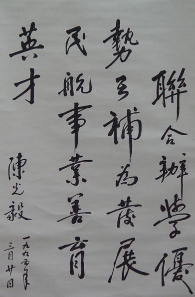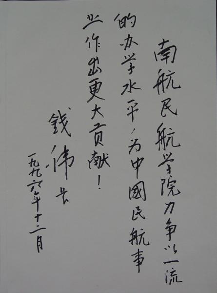 院题词:“为发展民航事业培养优秀人才而努力奋。”